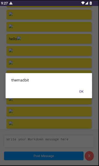 The MainActivity launches with a text area that accepts markdown and posts the input text into sticky note like designs. With the knowledge that the app is vulnerable to XSS, the text area is the most plausible area to test for it.